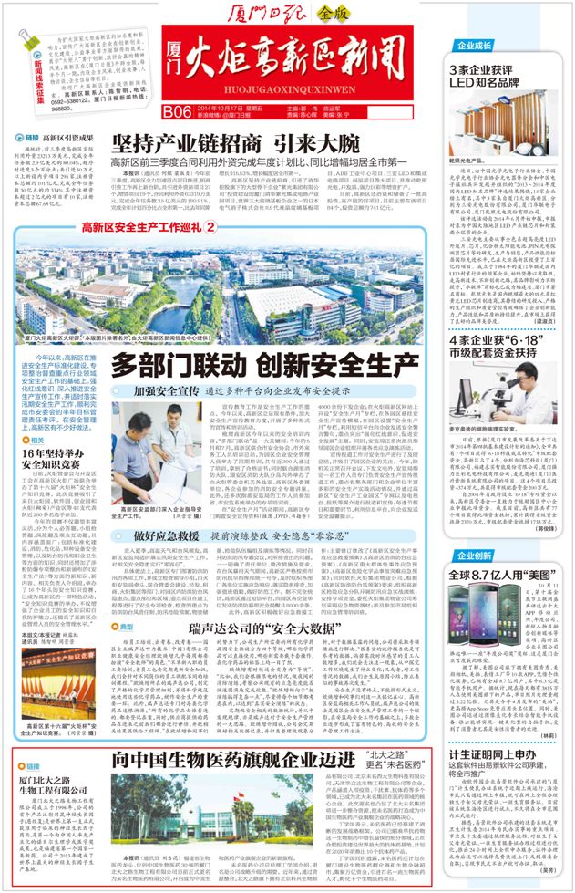 《廈門日報》:向中國生物旗艦企業邁進